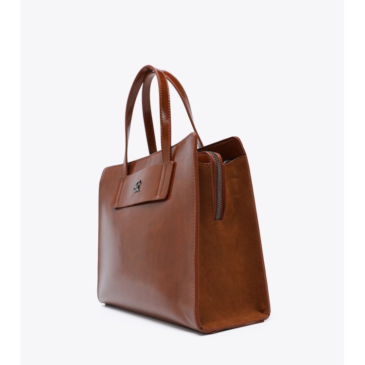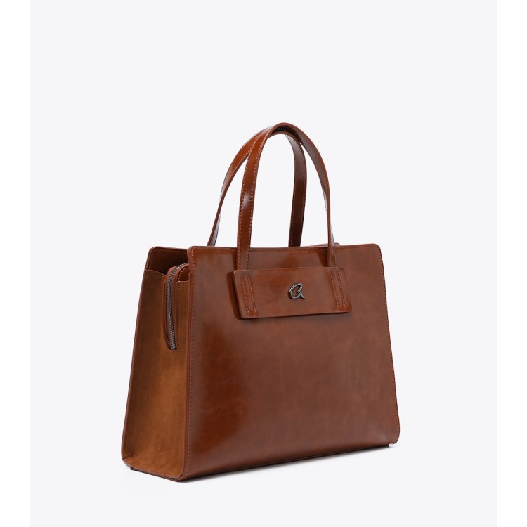 Γυναικεία τσάντα χειρός Catia, κατασκευασμένη από **υψηλής ποιότητας τεχνόδερμα**, με **λεία υφή** και λεπτομέρειες **σουέτ** στα πλαϊνά. Η τσάντα διαχωρίζεται σε τρία τμήματα εσωτερικά: ένα κεντρικό τμήμα που περιλαμβάνει **φόδρα**, **ανοιχτές θήκες** και **τσέπη φερμουάρ**, καθώς και δύο πλαϊνά τμήματα για εύκολη πρόσβαση. Διαθέτει κράτημα με **διπλά χερούλια** και **αποσπώμενο λουράκι**, που επιτρέπει τη χρήση της και ως χιαστί. Ασφαλίζει με **διπλό φερμουάρ** και **μαγνητικά κουμπώματα**. Ιδανική επιλογή για κομψές εμφανίσεις. Θήκες Τσάντας: Εσωτερικές θήκες, Εσωτερική τσέπη με φερμουάρ Κλείσιμο: Κλείσιμο με φερμουάρ, Μαγνητικό κούμπωμα Κράτημα Τσάντας: Διπλά Χερούλια, Λουράκι Λουρί Τσάντας: Αποσπώμενο λουράκι Υλικό τσάντας: Συνθετικό δέρμα, Φόδρα, Σουέτ υφή Διαστάσεις: Πλάτος 11cm, Μήκος 32cm, Ύψος 23cm Μέγεθος: Μεσαία