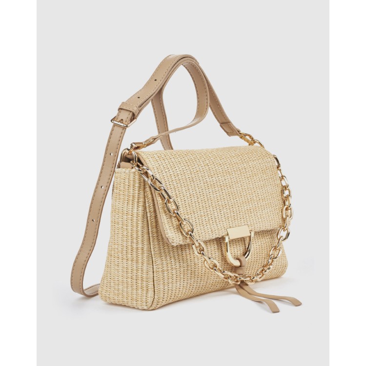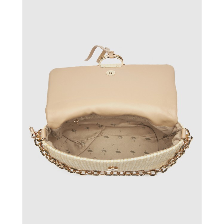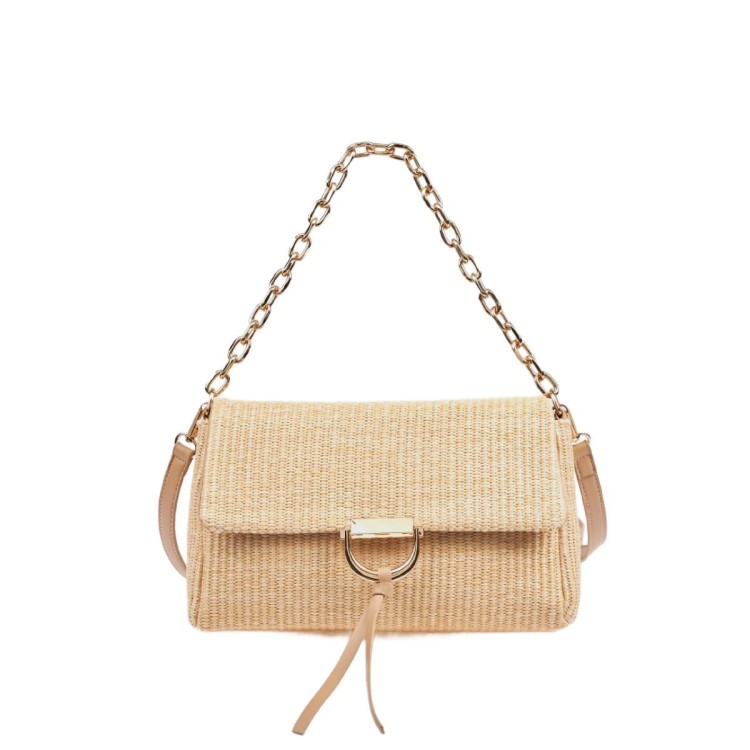 Verde Αμπιγιέ Ψάθινη Τσάντα Ώμου Μπεζ