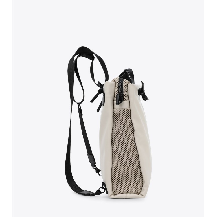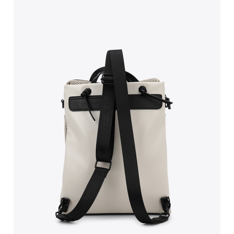 Γυναικείο σακίδιο πλάτης 3 way to wear από υψηλής ποιότητας τεχνόδερμα. Διαθέτει διπλά χερούλια για καλύτερο κράτημα και ρυθμιζόμενους ιμάντες πλάτης. Στα πλαϊνά είναι επενδυμένο με φάσμα από δίχτυ. Εσωτερικά διαθέτει φόδρα και περιέχει θήκες και τσέπη που κλείνει. Κλείσιμο με φερμουάρ.
